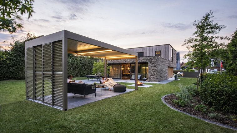 Bioklimatické pergoly jsou skvělou ochranou před sluncem, a to díky naklápěcím lamelám, které zajistí přirozenou cirkulaci vzduchu a tím přispějí k teplotnímu komfortu pod pergolou. V boji proti nízkému slunci mohou být pergoly vybaveny bočními clonami. V nabídce máme nejen screenové rolety vedené v zipu, ale i posuvné panely.